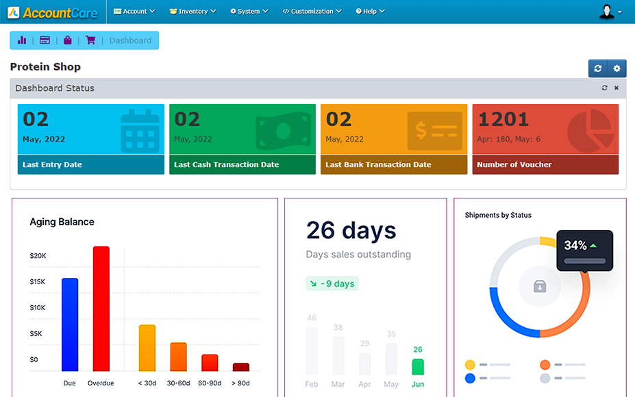 Designed for retailers that have one or several shops, cafe, or restaurant, Account-Care Advanced Inventory can easily keep track of the products, allowing you to have a full control over your stock. It also gives you an easy tool to track and manage your orders and receive and transfer goods between your locations.